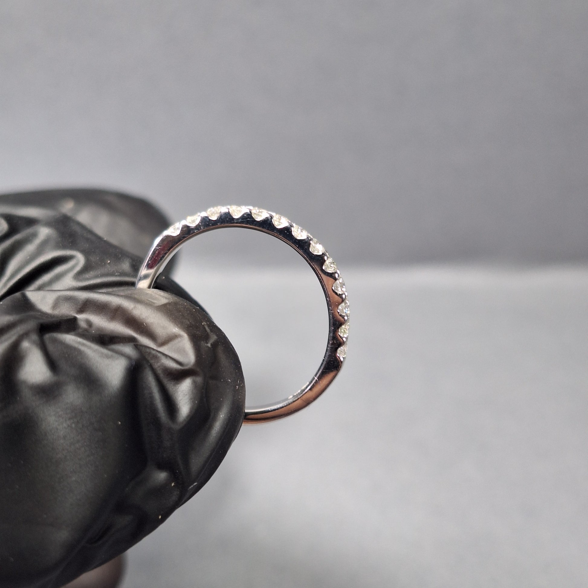 Expertly crafted from platinum, this half eternity diamond ring features a stunning array of sparkling diamonds. With its timeless design and exceptional quality, this ring makes for a luxurious and everlasting addition to any jewelry collection. Elevate your style with this new platinum masterpiece.