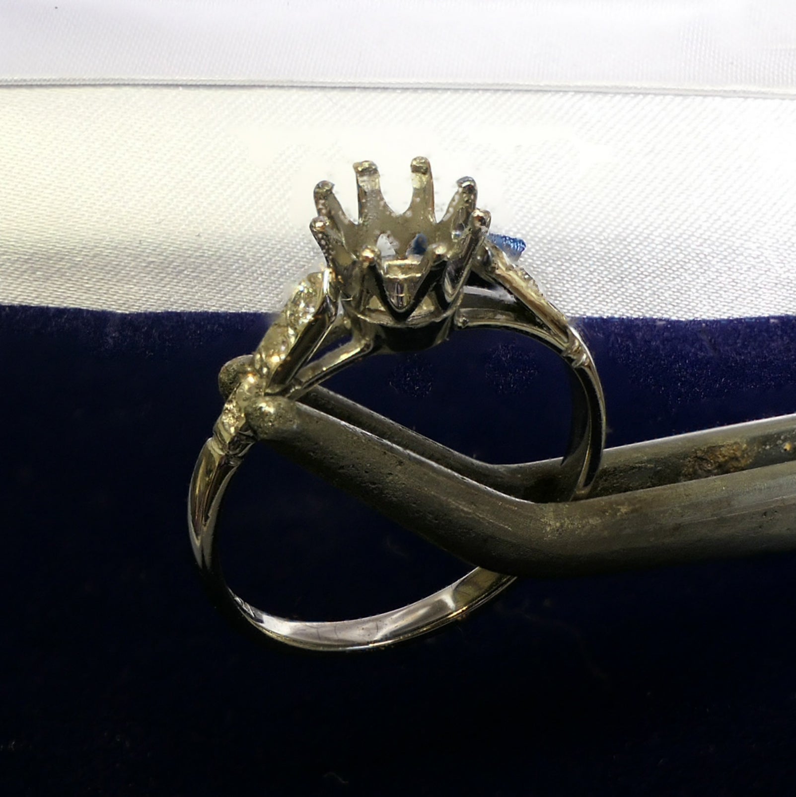 We had the pleasure of sourcing a replacement diamond for this beautiful ring. After finding a stone of the right size and grade, we examined the ring carefully and carried out the necessary repairs to ensure the setting was safe and secure. We set the replacement stone using specialist setting tools, polished the ring and returned it to the customer in almost new condition.