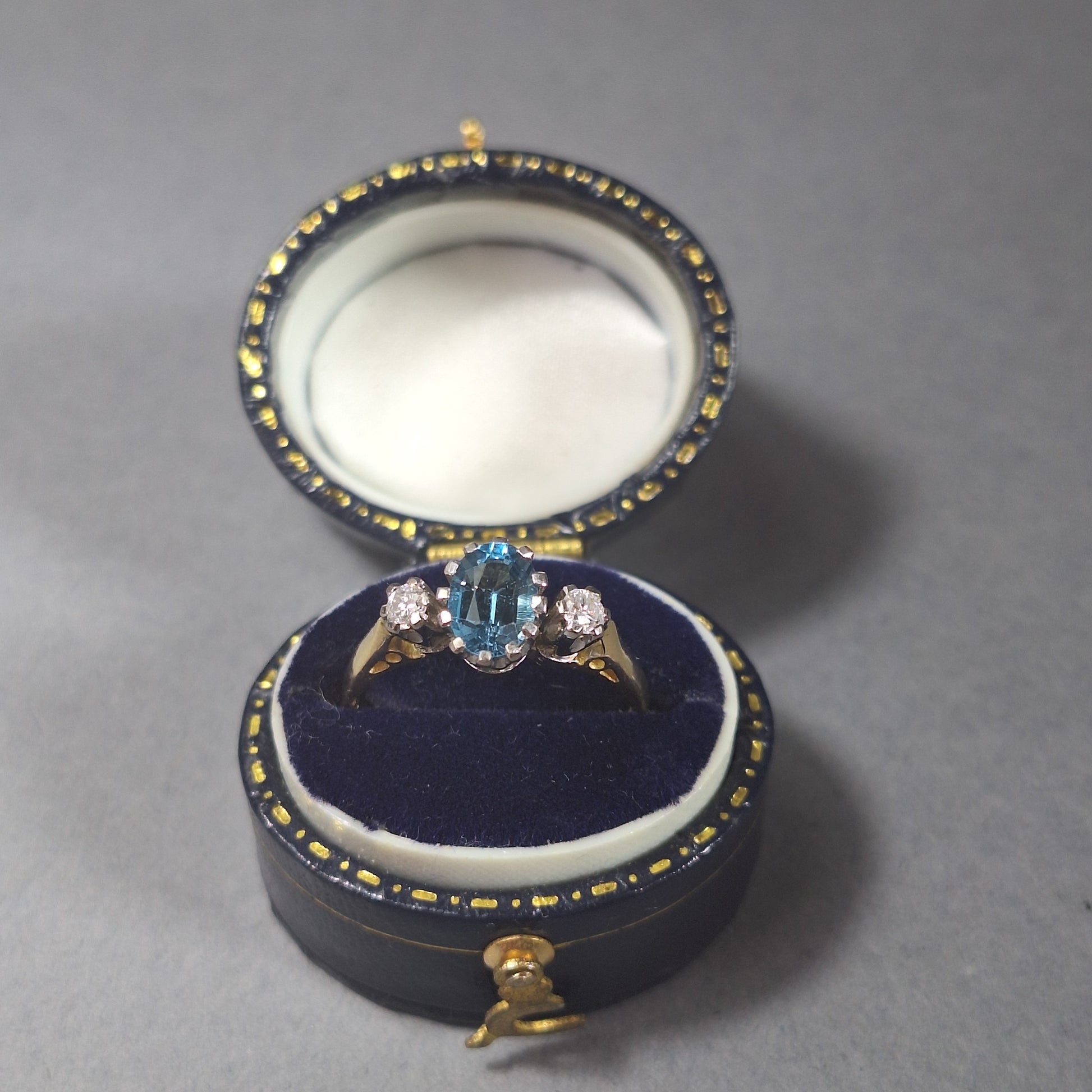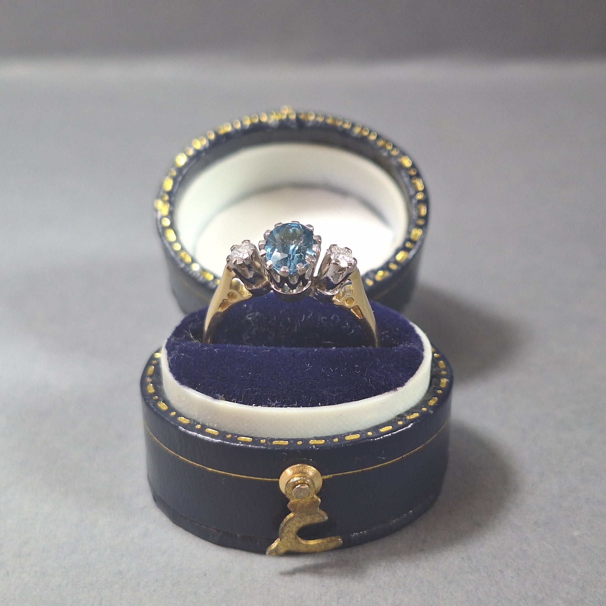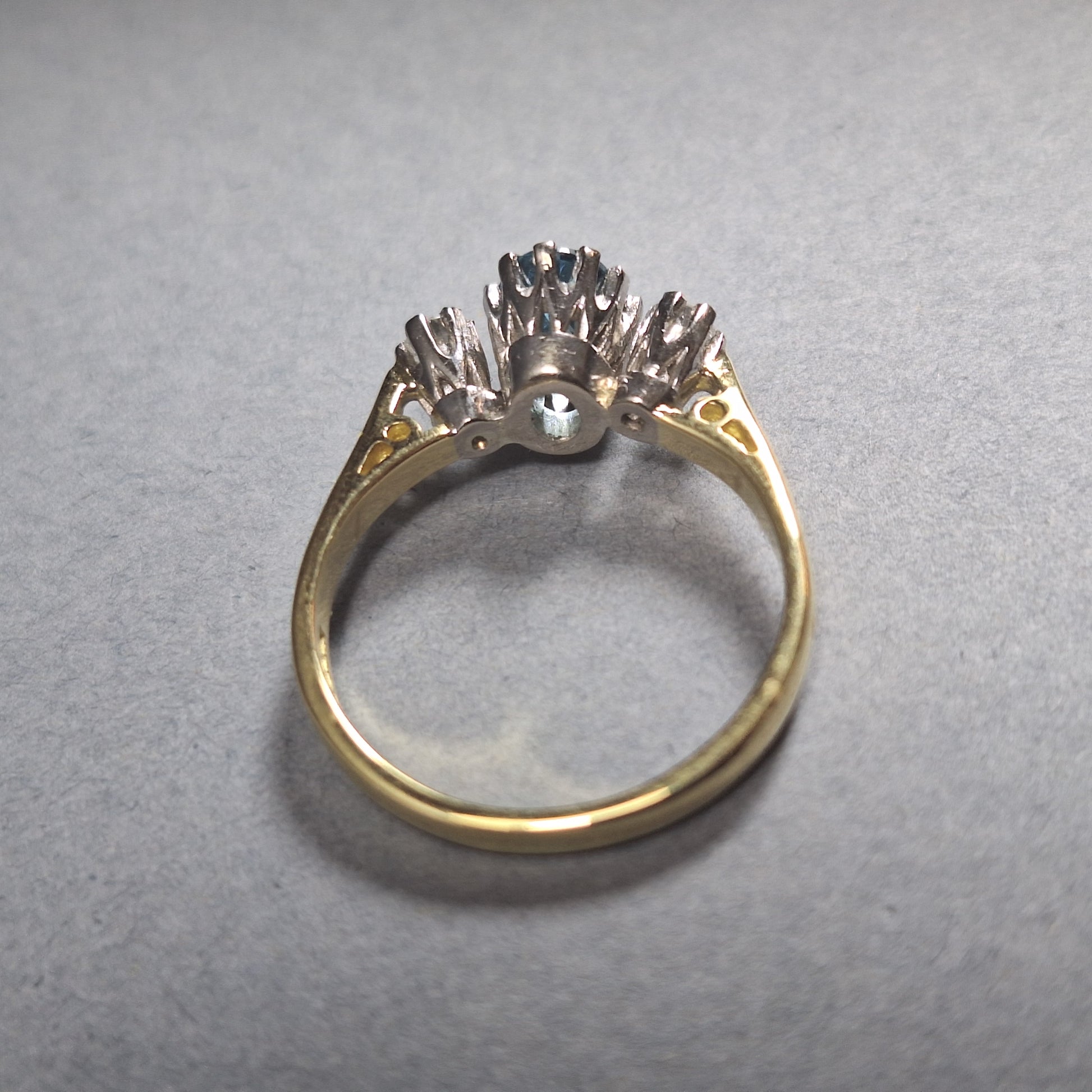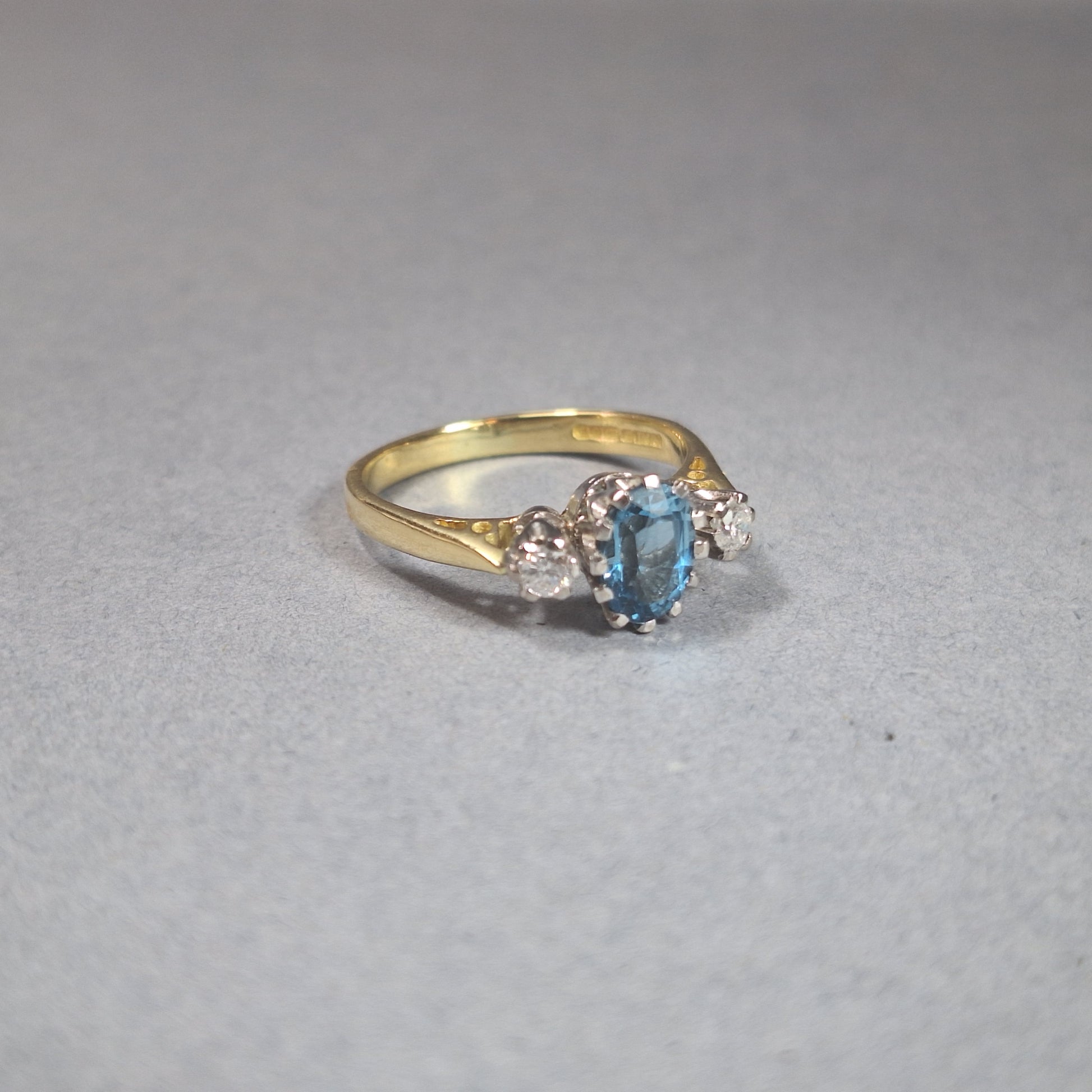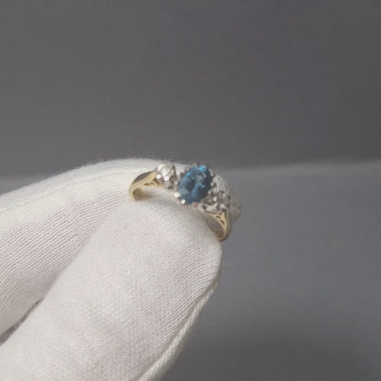 18ct Gold Blue Topaz and Diamond 3 Stone Ring