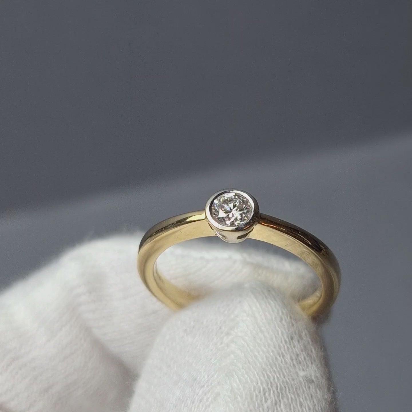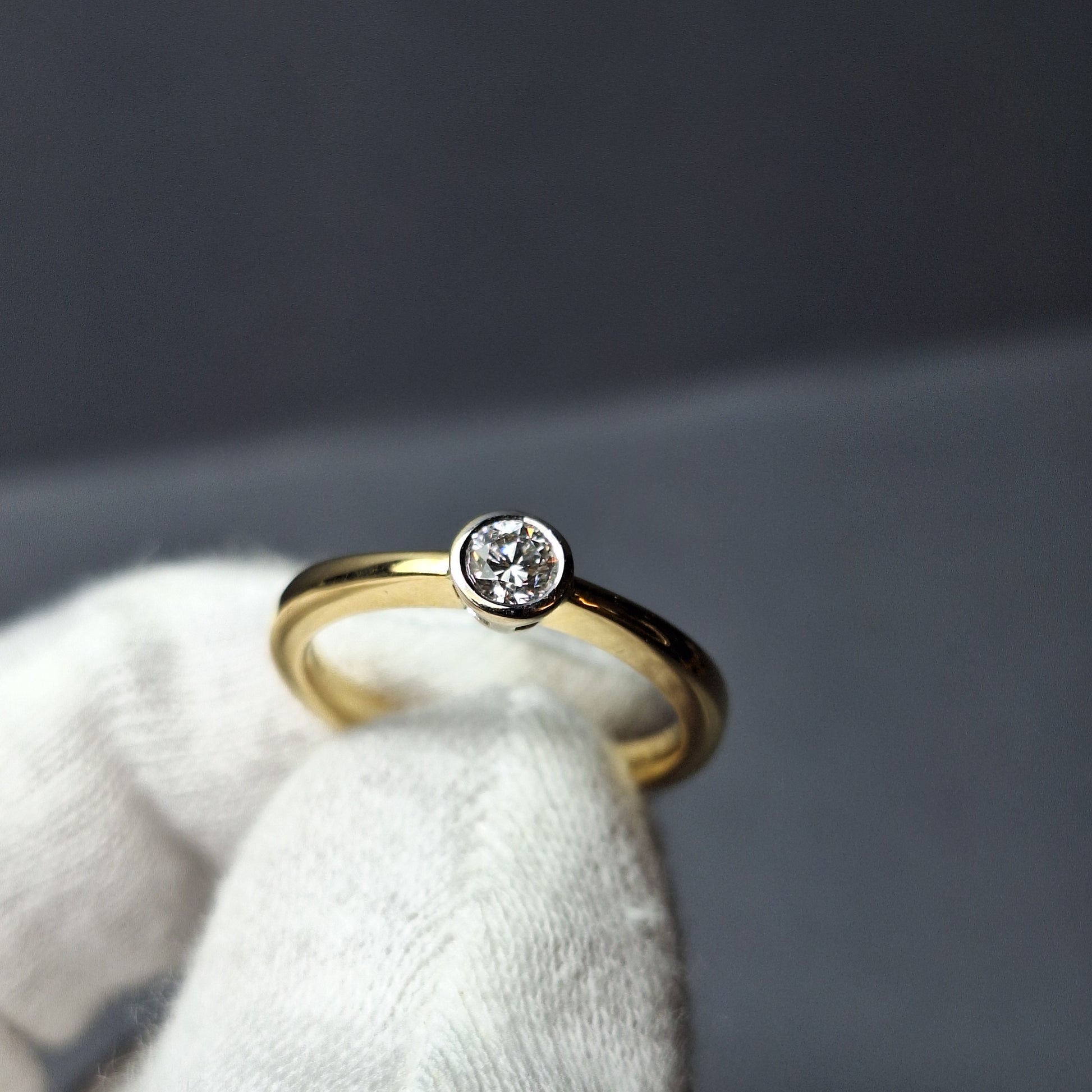 18ct Gold Diamond Rub over Single Stone Engagement Ring