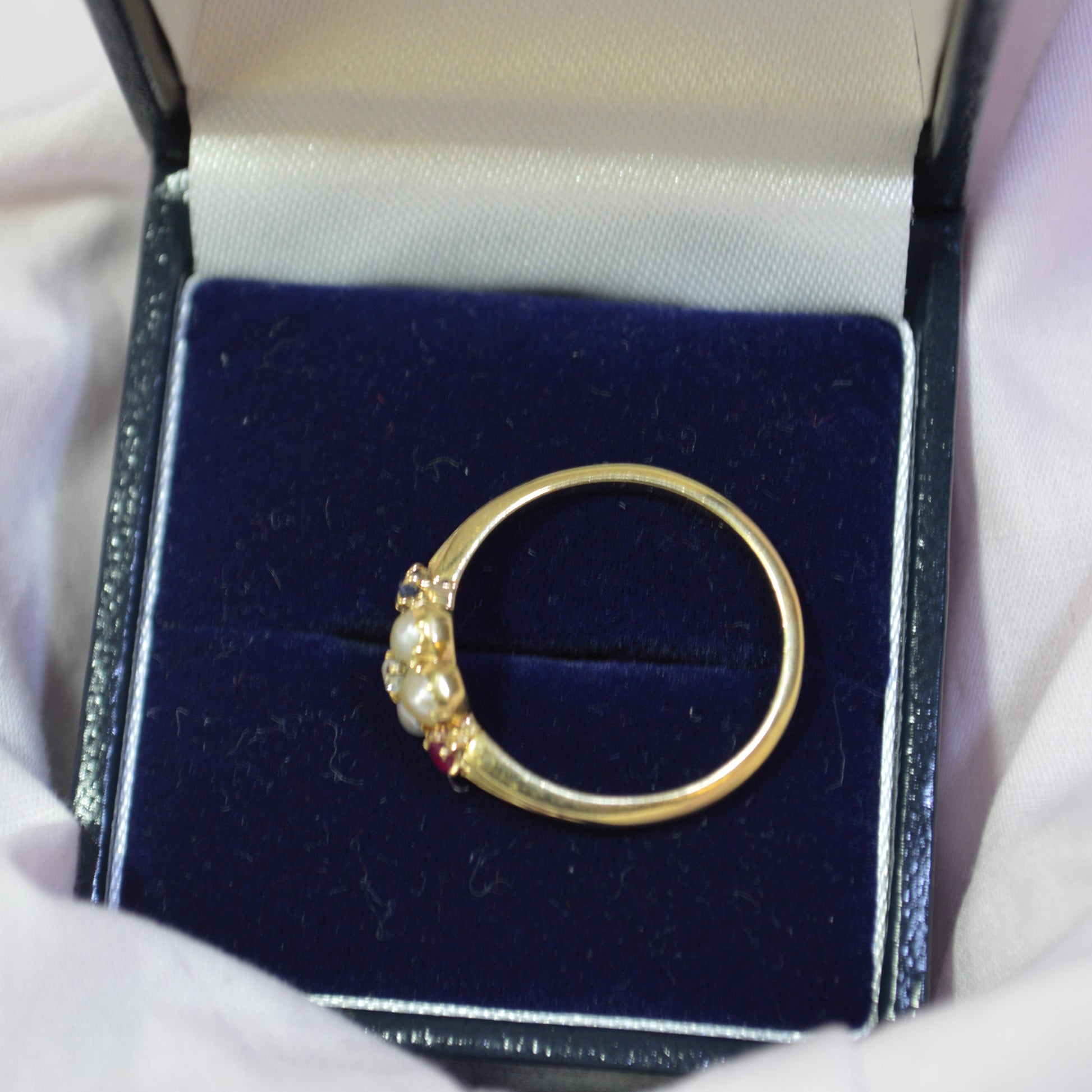 18ct Pearl ring With Ruby & Sapphires