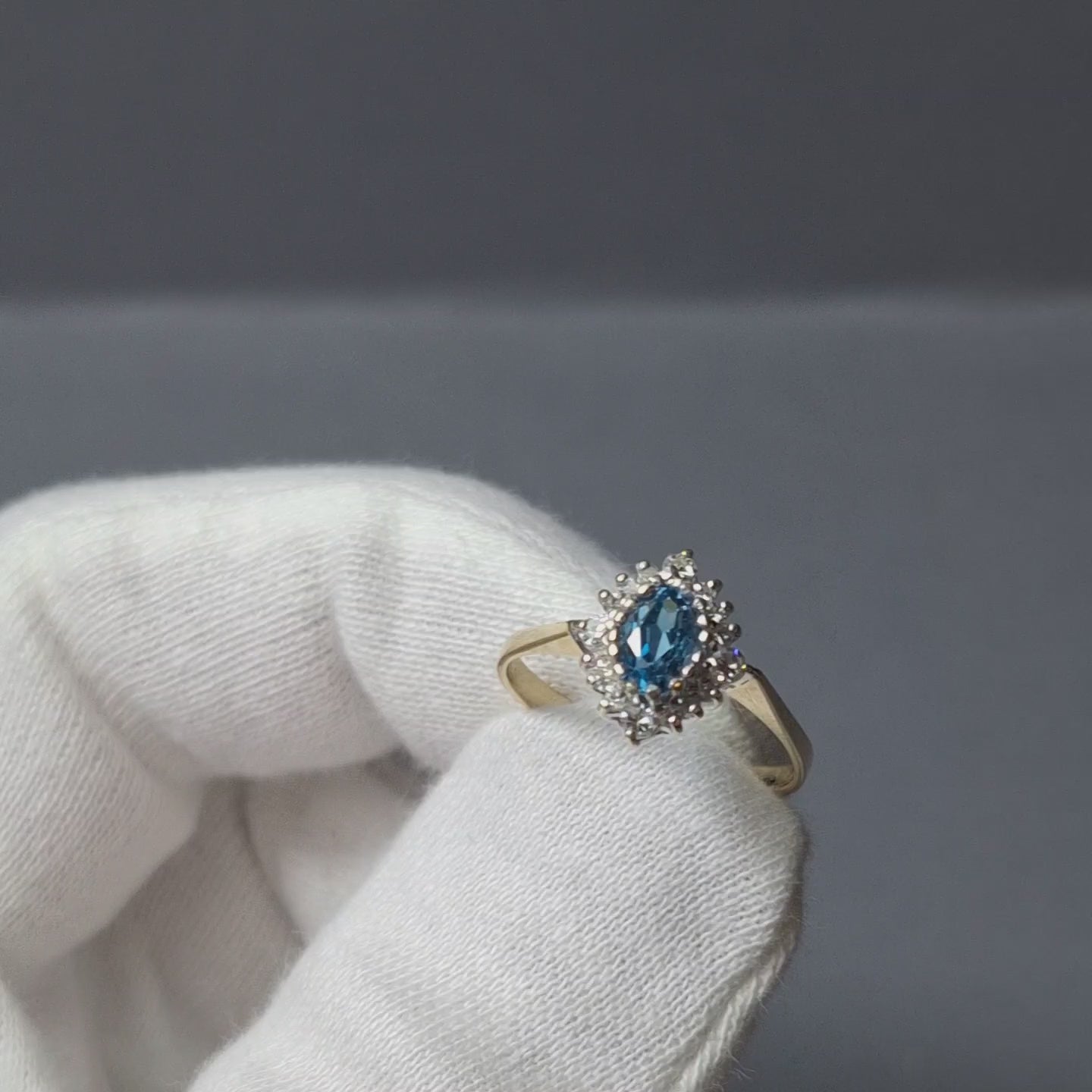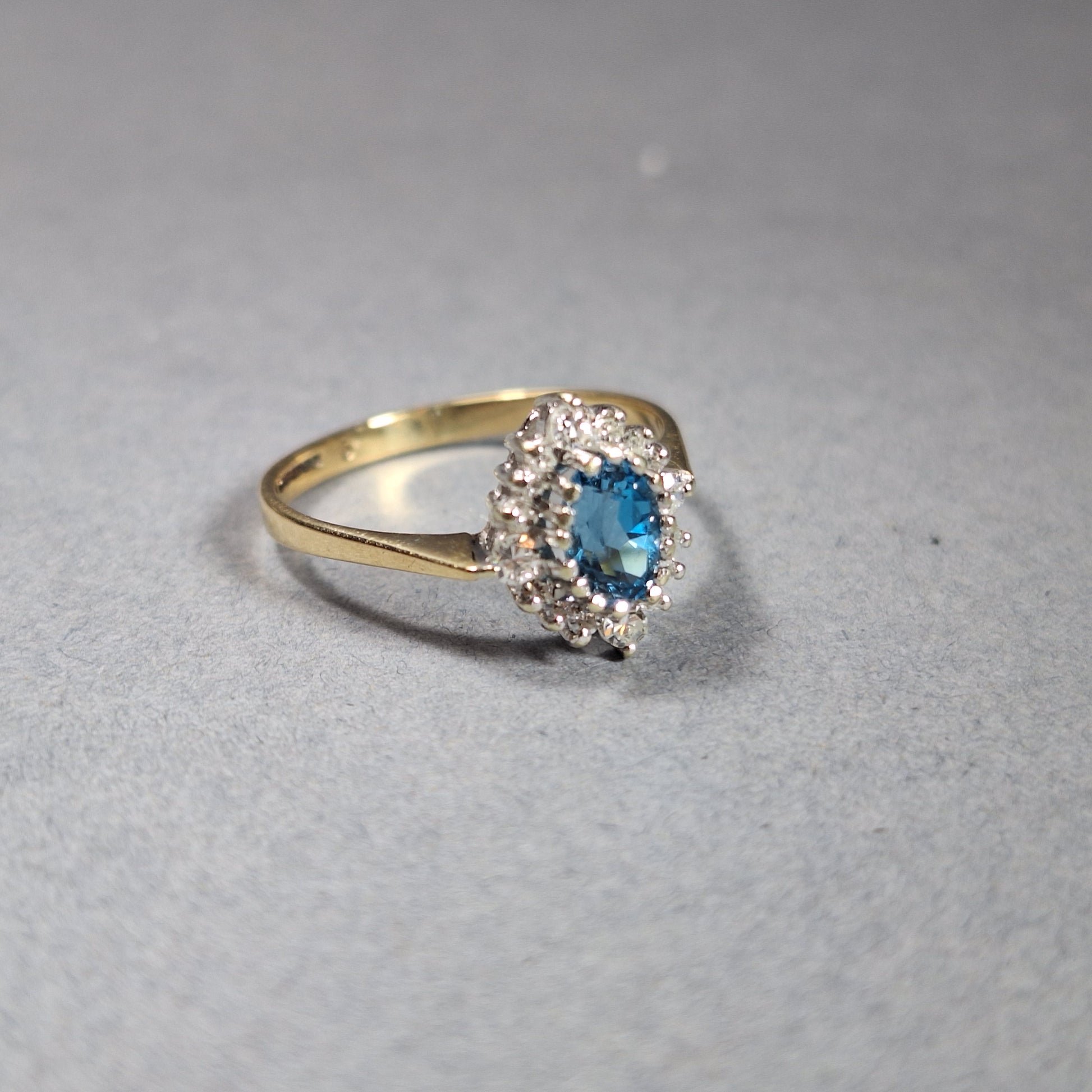 9ct Gold Blue Topaz and Diamond Dress Ring