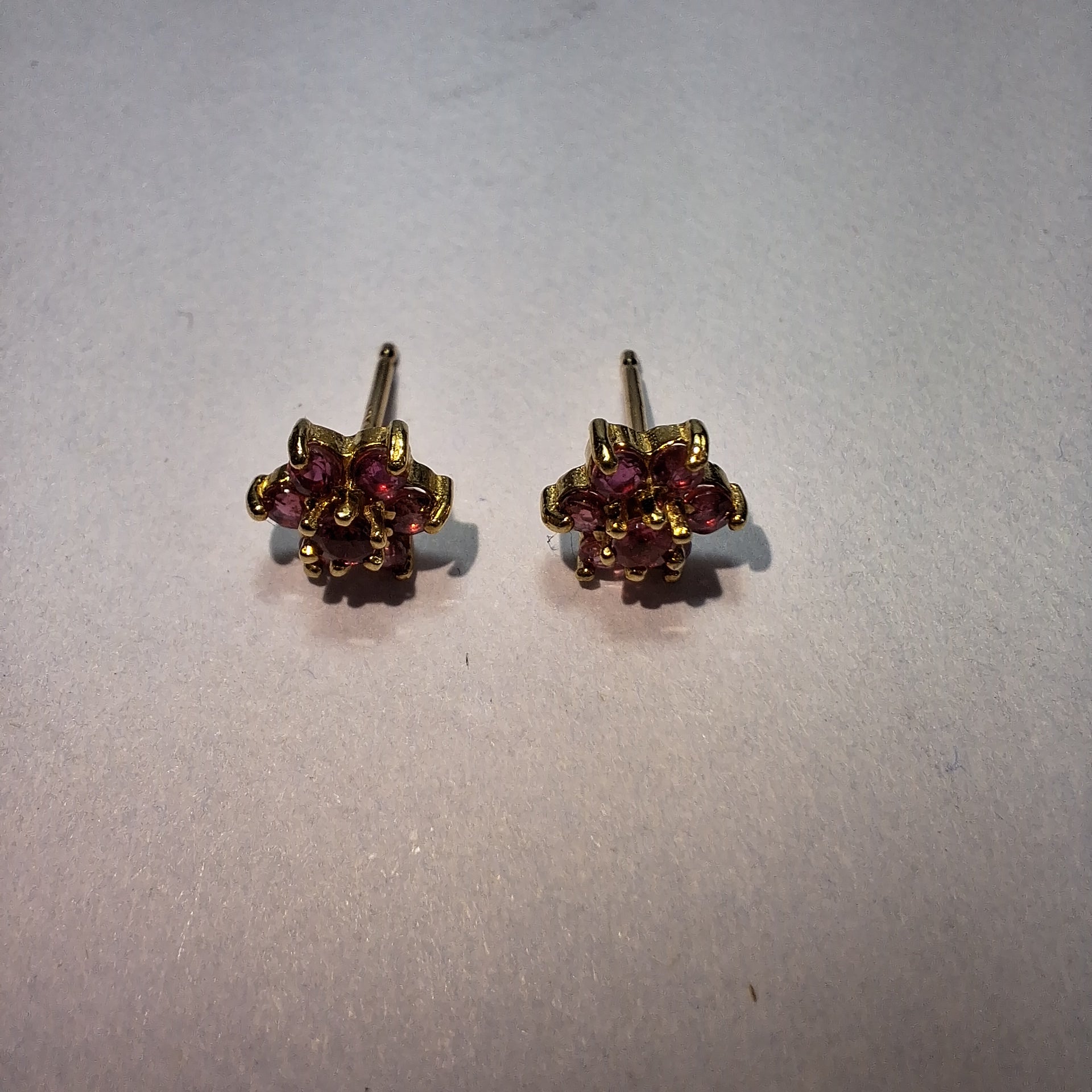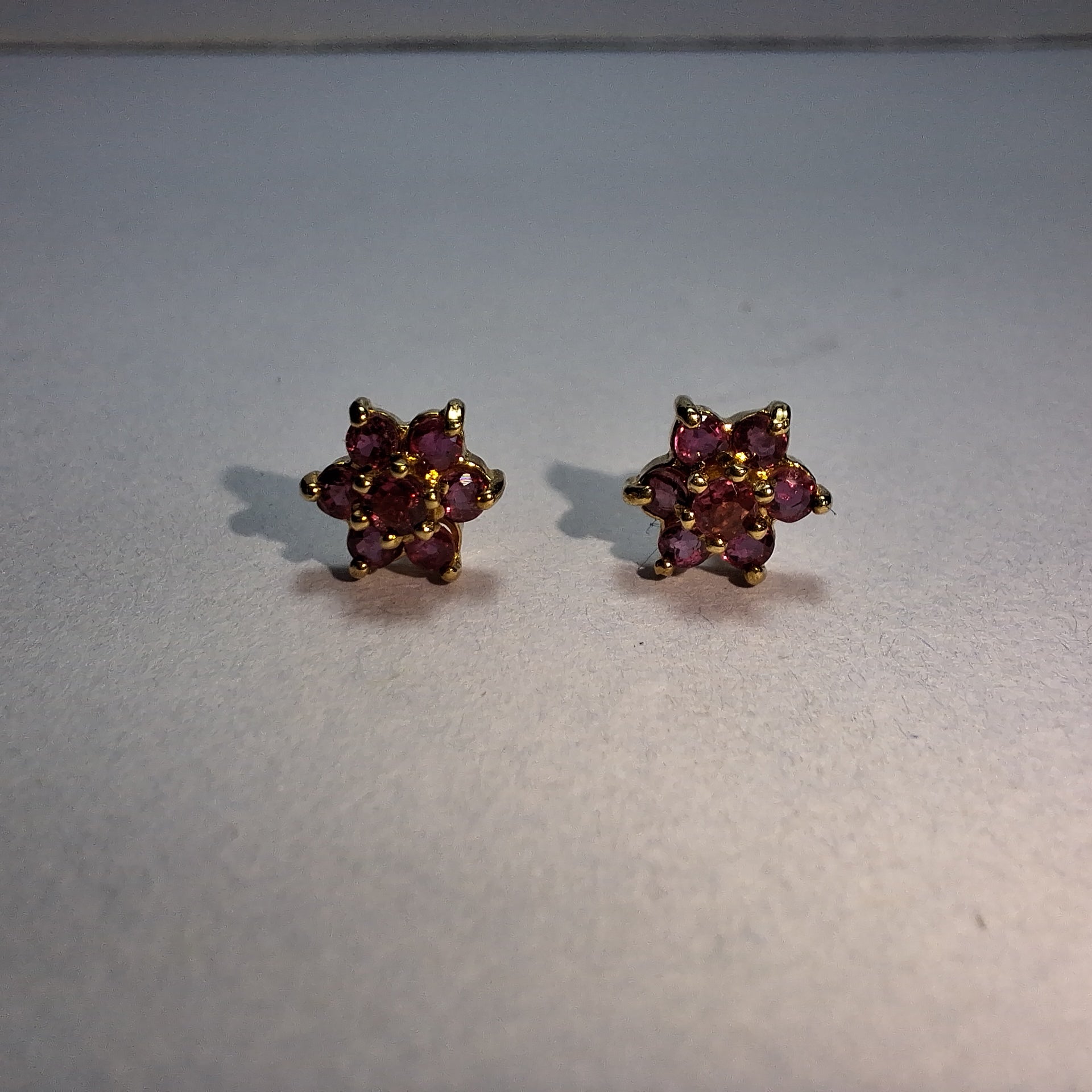 Enhance your look with these elegant 9ct Ruby flower studs. Made of high-quality materials, these studs add a touch of sophistication to any outfit. With its unique design and vibrant colour, you'll be sure to make a statement. Perfect for any occasion, these studs are a must-have for any jewellery collection.