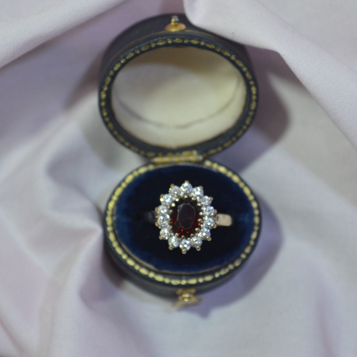 Indulge in timeless elegance with our 9ct vintage style Red & White cubic Zirconia ring. This luxurious piece exudes sophistication and charm, crafted with high-quality materials for a lasting shine. Let the dazzling combination of red and white CZ stones add a touch of glamour to any ensemble.