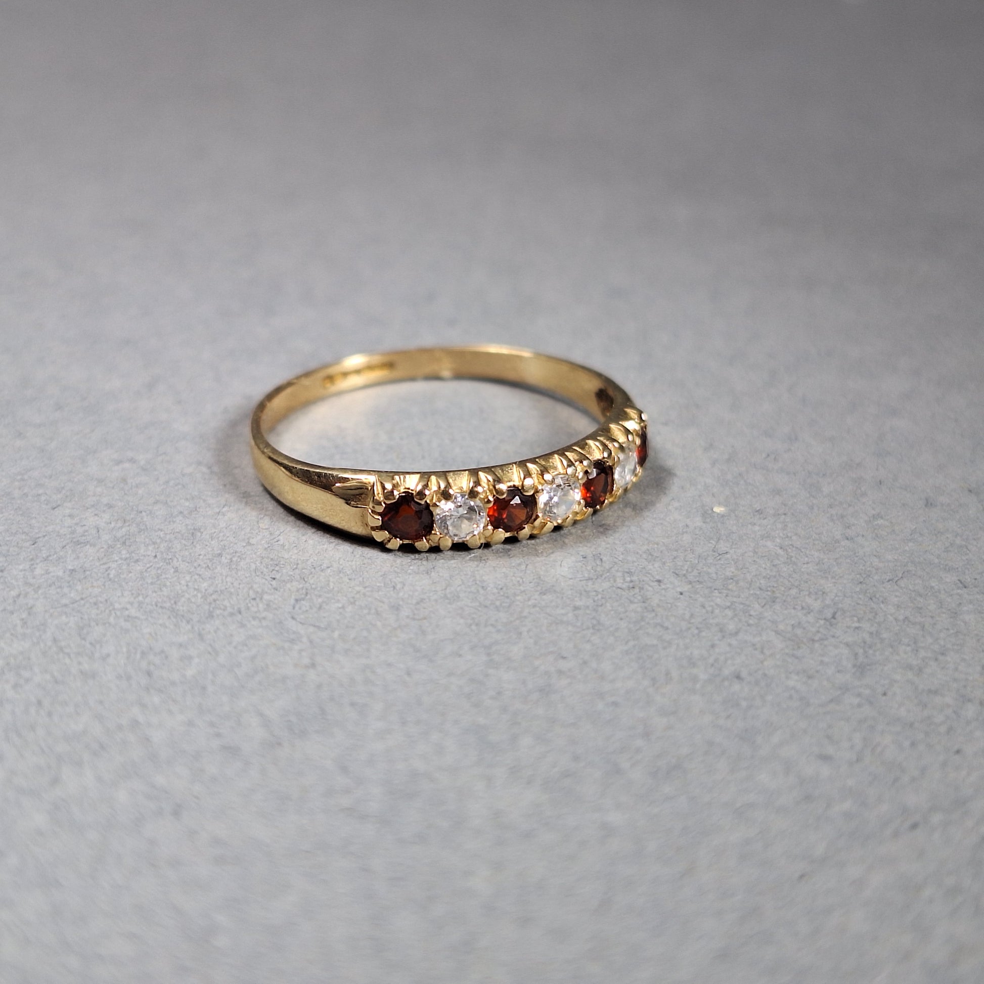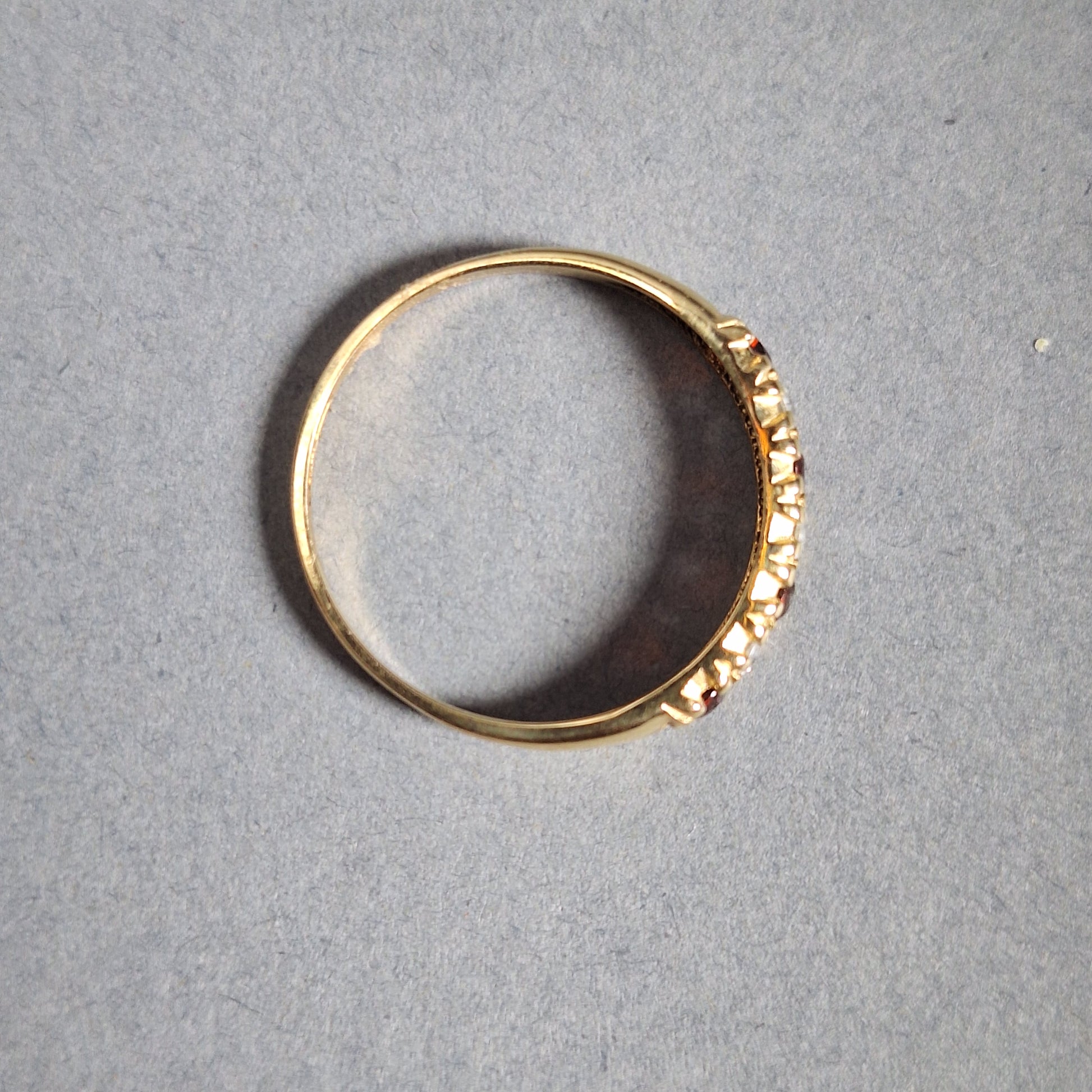 9ct Yellow gold clear & red cubic zirconia 1/4 eternity ring