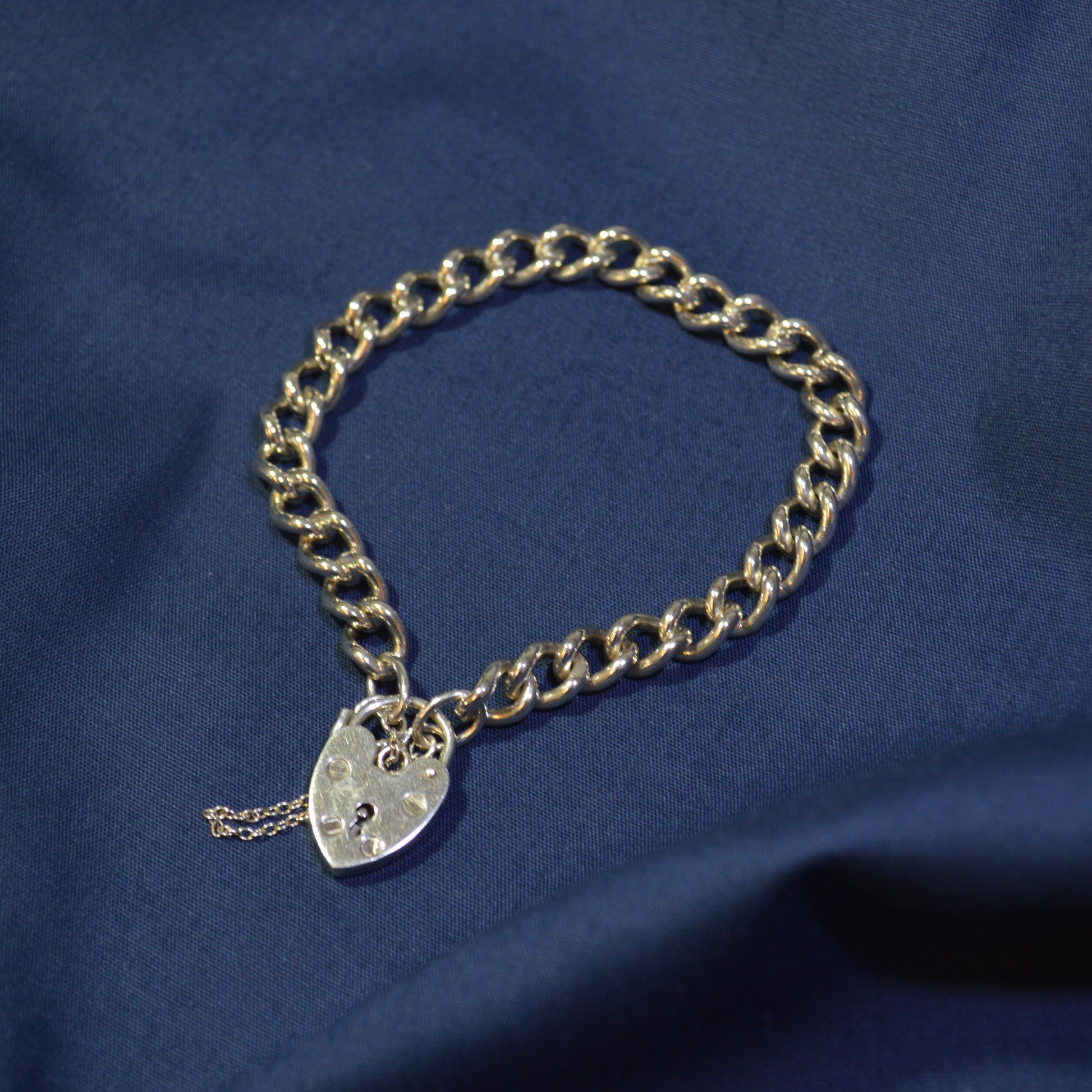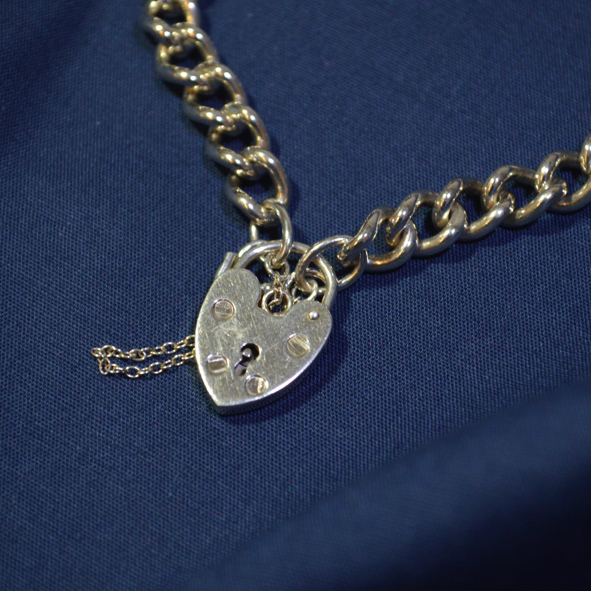 This pre-loved Silver charm bracelet features a heart closure. At 8 inches in length, it is the perfect addition to any outfit. Enhance your style with this elegant, high-quality bracelet.