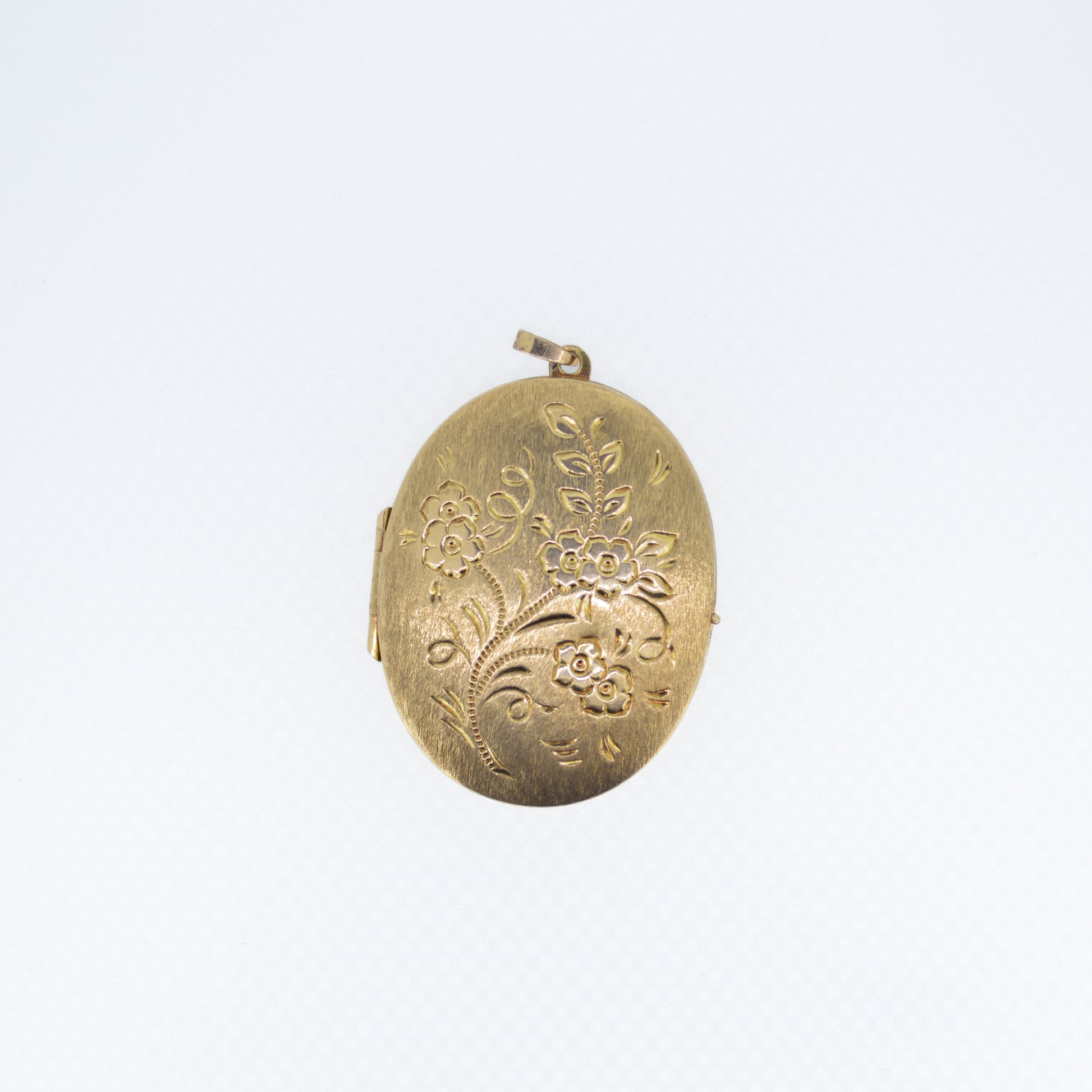 Vintage Engraved 9ct Gold Large Pendant. Boasting intricate design and elegant craftsmanship, this 9ct gold pendant is perfect for turning an everyday outfit into a timeless look.