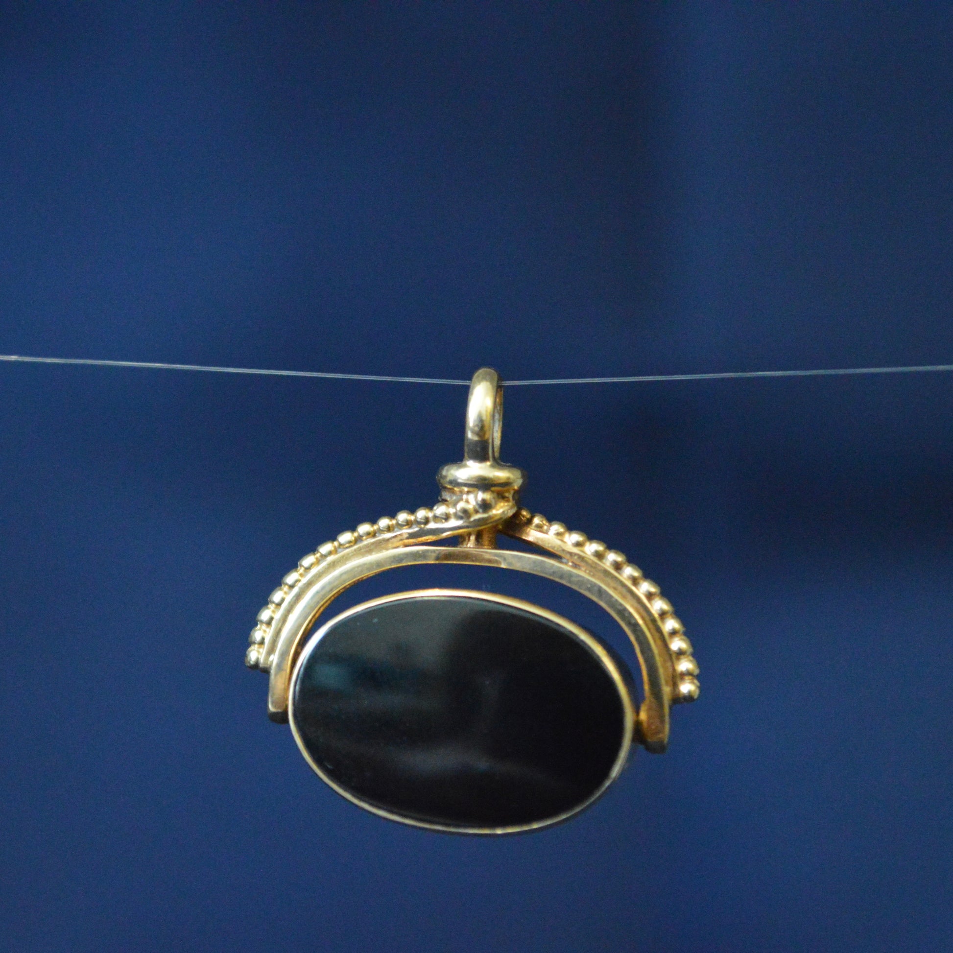 This vintage 9ct yellow gold fob features a unique combination of black onyx and carnelian stones, adding a unique and timeless design. Its durable gold construction ensures durability, making it a perfect heirloom piece.