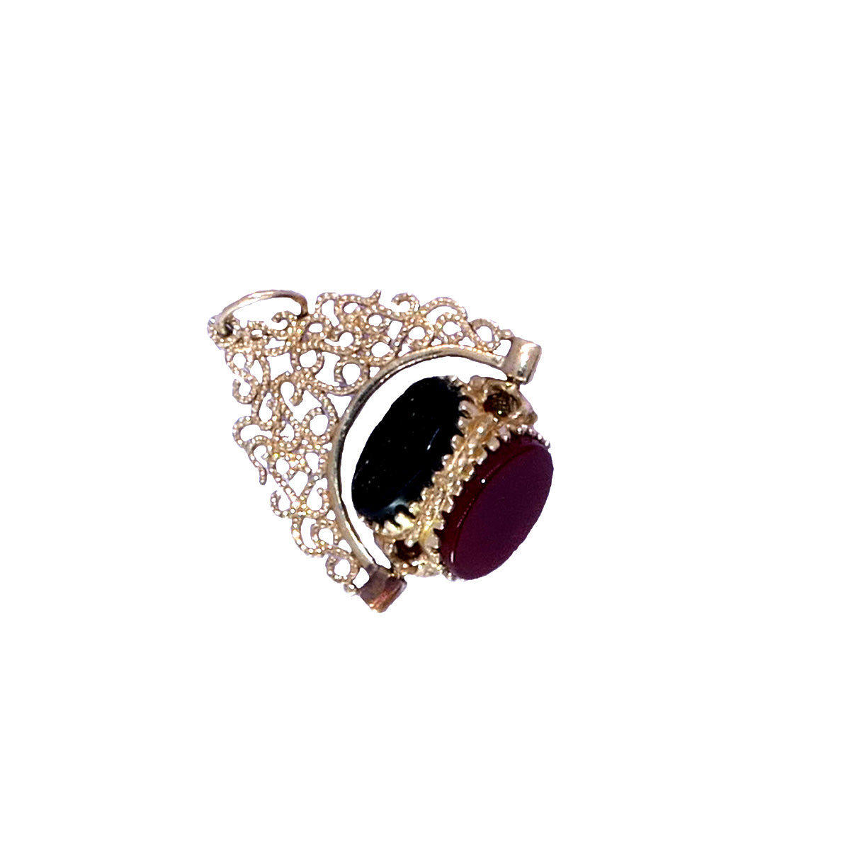 This beautiful vintage piece combines 9ct yellow gold and 3 vibrant stones for a stunning look. A classic design that will never go out of style, this fob is sure to become a cherished keepsake.