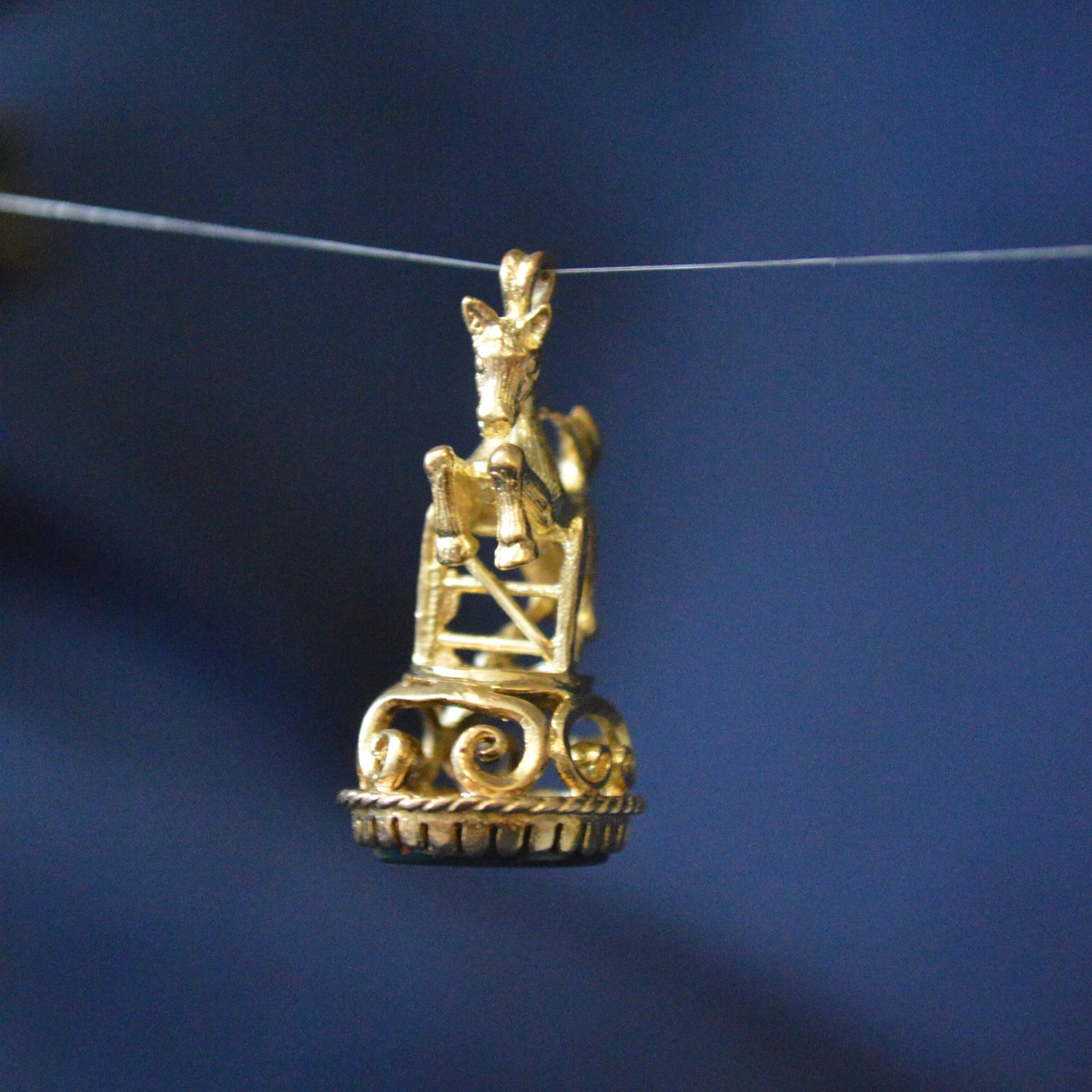 This beautifully crafted 9ct yellow horse fob captures a timeless style from a bygone era. Expertly made from the finest 9ct gold, each fob is unique and makes a perfect collectors piece. Add a touch of classic sophistication to any outfit.