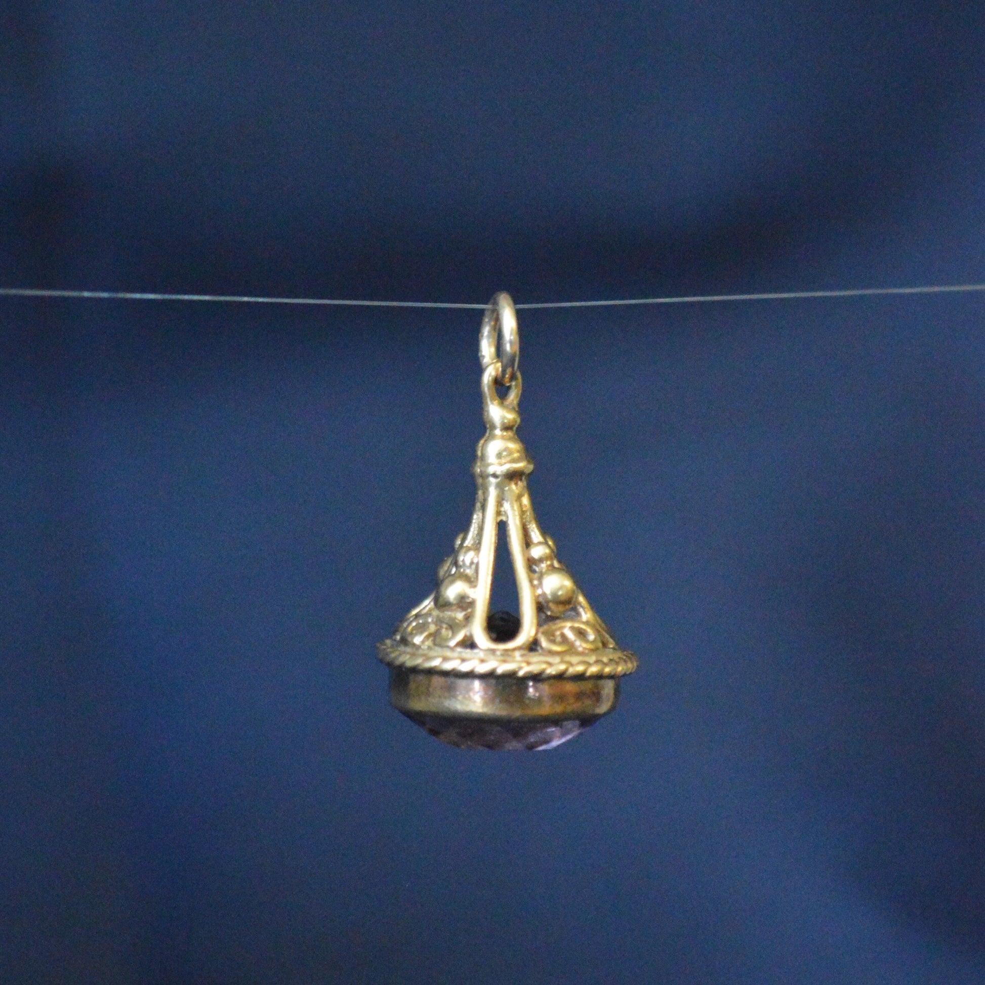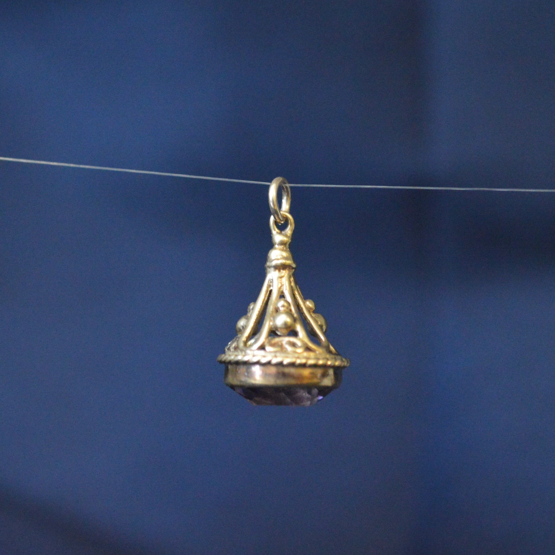 This Vintage antique 9ct yellow gold amethyst fob is a treasured addition to any jewellery collection. Crafted from 9ct yellow gold and featuring a stunning amethyst gemstone, this heirloom piece is a timeless classic.