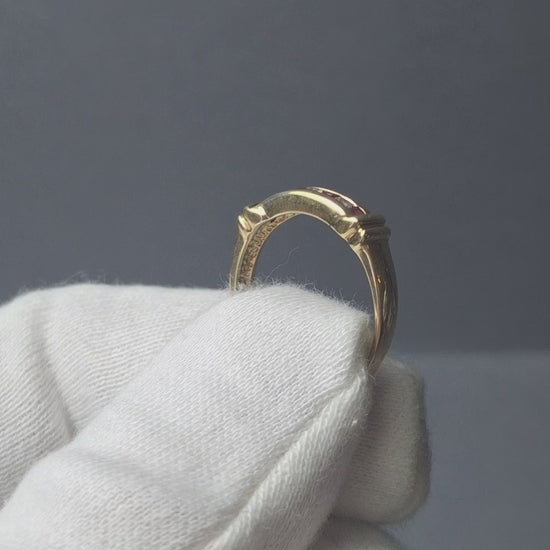 This exquisite vintage ring features a timeless channel-set design in rich 9ct yellow gold, accented with both brilliant diamonds and beautiful rubies. A perfect blend of sophistication and glamour, this ring is sure to be a treasured heirloom for generations.